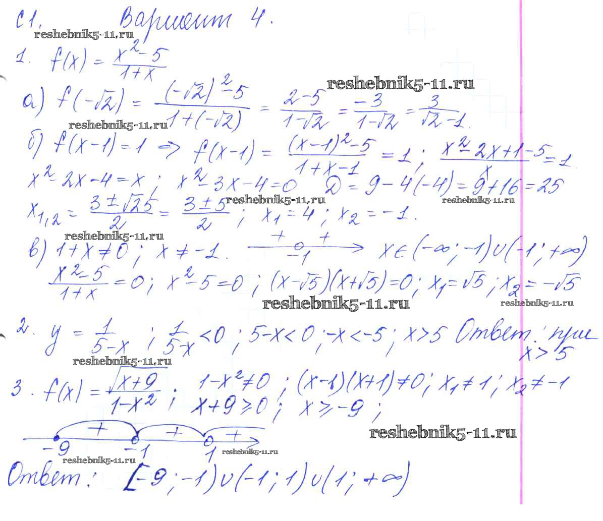 Готовая домашняя работа с ответами по Алгебре за 9 класс Журавлев, Малышева, Свентковский Контрольные и самостоятельные работы УМК Экзамен 2016 ФГОС - С-1. Функции и их свойства Вариант №4
