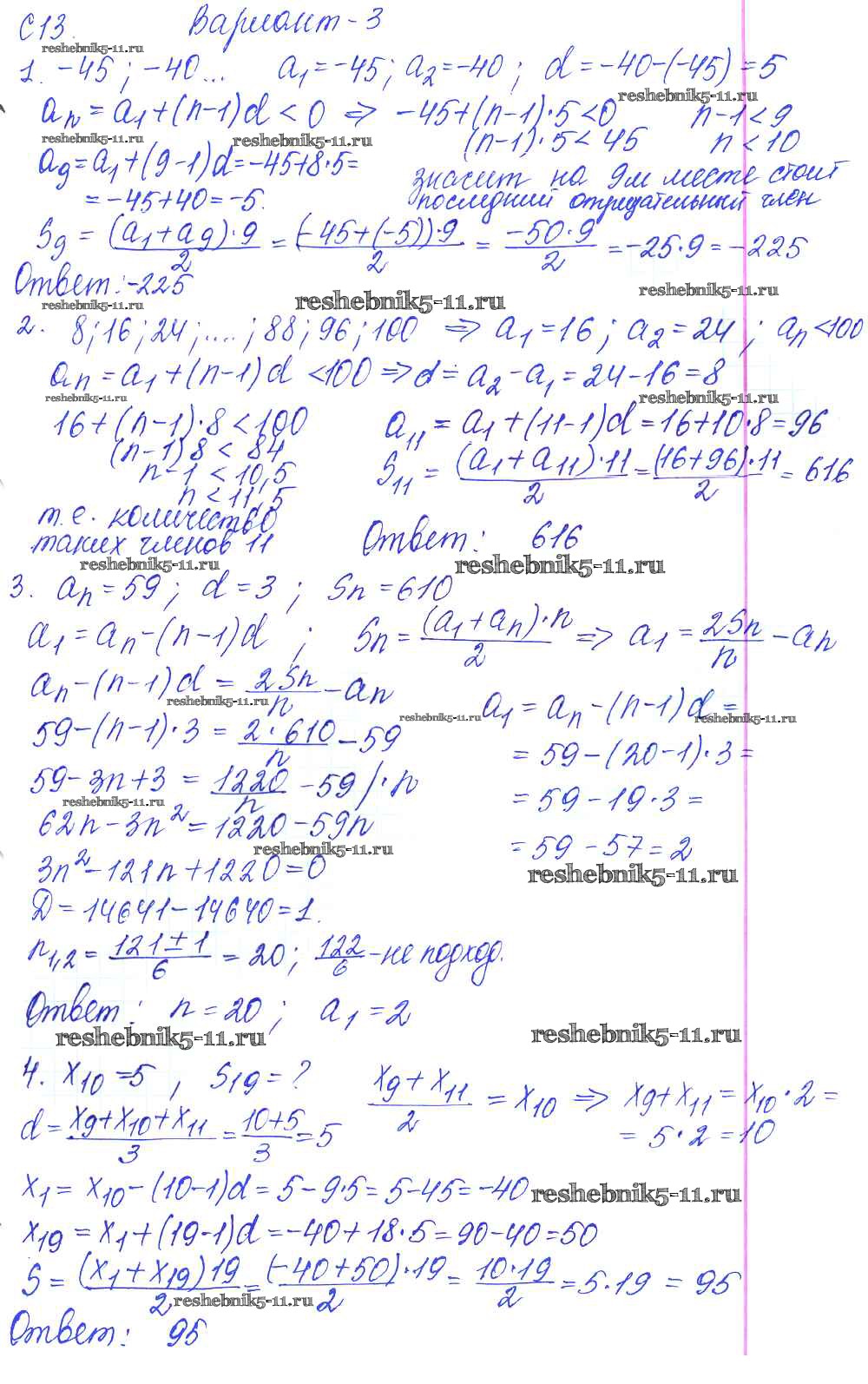 Готовая домашняя работа с ответами по Алгебре за 9 класс Журавлев, Малышева, Свентковский Контрольные и самостоятельные работы УМК Экзамен 2016 ФГОС - С-13. Формула суммы n первых членов арифметической прогрессии Вариант №3