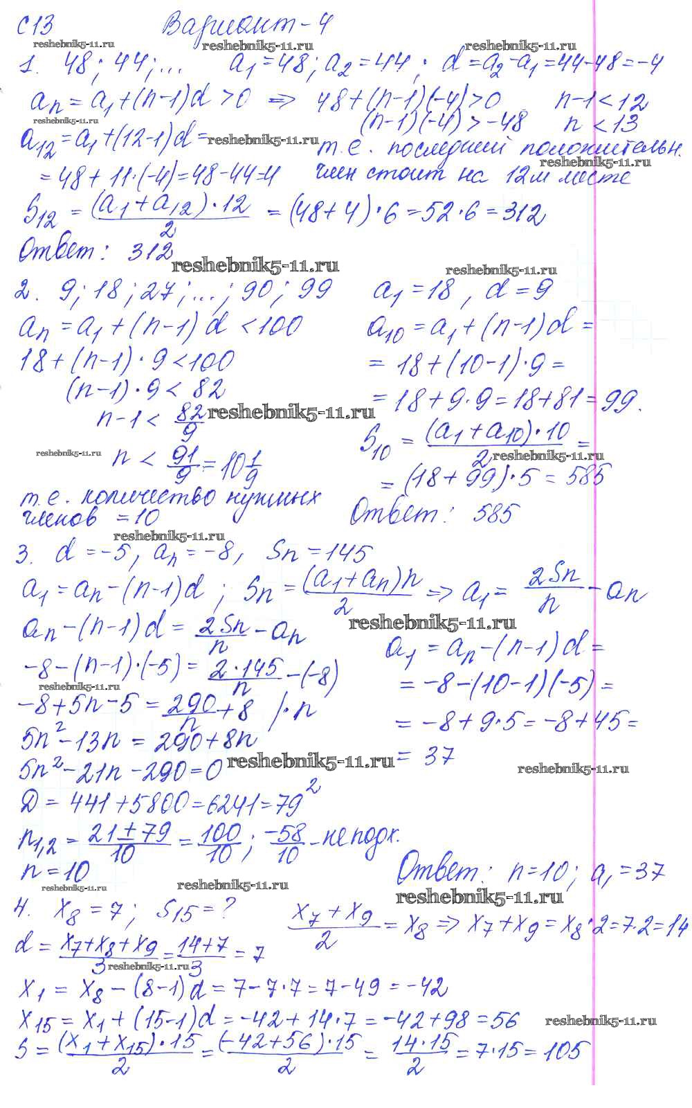 Готовая домашняя работа с ответами по Алгебре за 9 класс Журавлев, Малышева, Свентковский Контрольные и самостоятельные работы УМК Экзамен 2016 ФГОС - С-13. Формула суммы n первых членов арифметической прогрессии Вариант №4