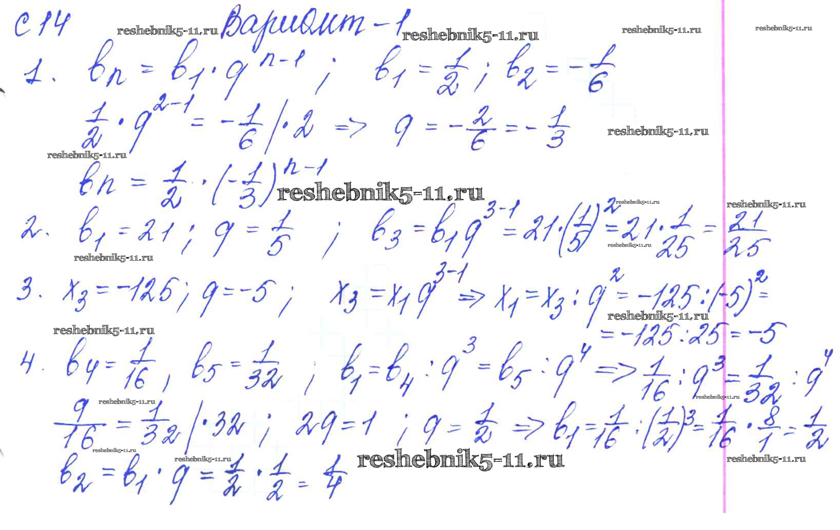 Готовая домашняя работа с ответами по Алгебре за 9 класс Журавлев, Малышева, Свентковский Контрольные и самостоятельные работы УМК Экзамен 2016 ФГОС - С-14. Геометрическая прогрессия Вариант №1