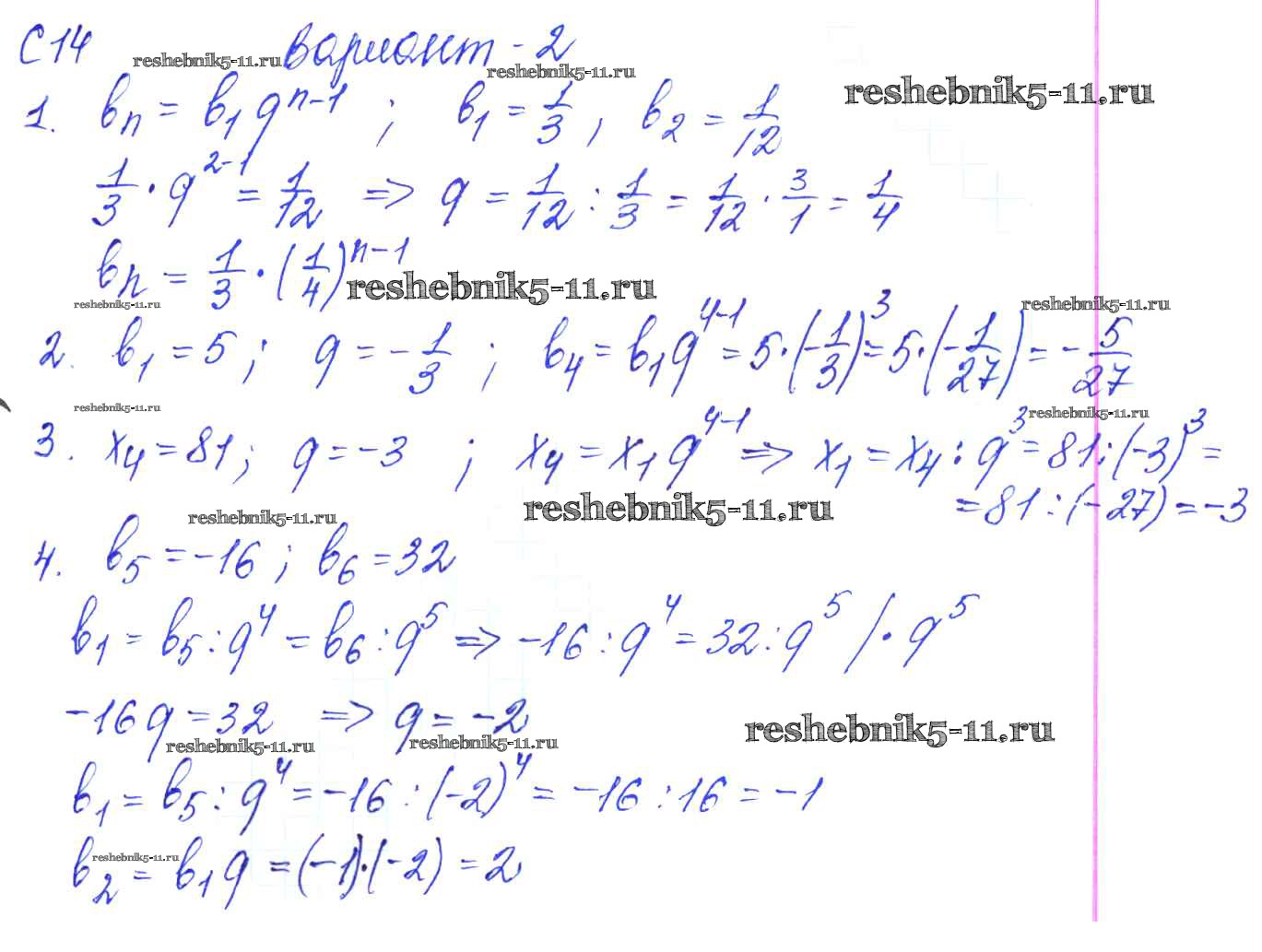 Готовая домашняя работа с ответами по Алгебре за 9 класс Журавлев, Малышева, Свентковский Контрольные и самостоятельные работы УМК Экзамен 2016 ФГОС - С-14. Геометрическая прогрессия Вариант №2