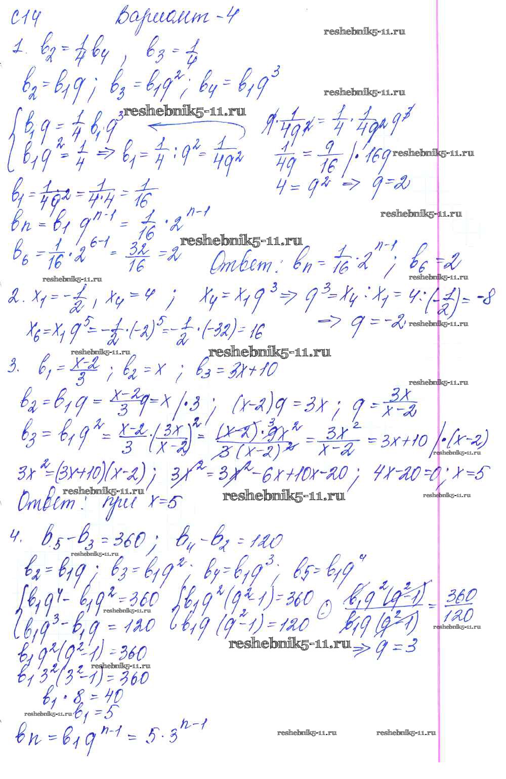 Готовая домашняя работа с ответами по Алгебре за 9 класс Журавлев, Малышева, Свентковский Контрольные и самостоятельные работы УМК Экзамен 2016 ФГОС - С-14. Геометрическая прогрессия Вариант №4