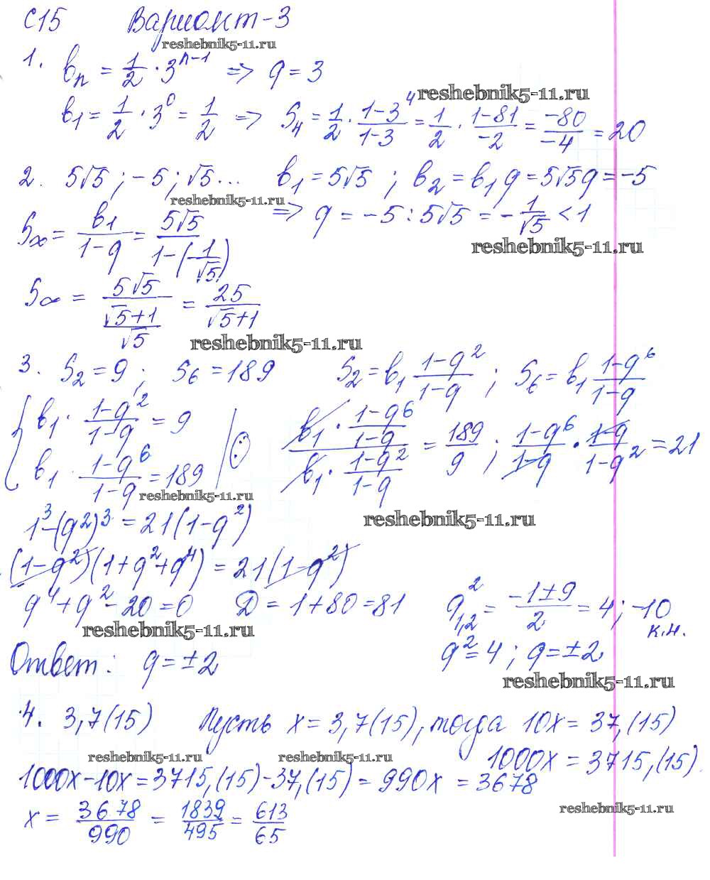 Готовая домашняя работа с ответами по Алгебре за 9 класс Журавлев, Малышева, Свентковский Контрольные и самостоятельные работы УМК Экзамен 2016 ФГОС - С-15. Формула суммы первых n членов геометрической прогрессии Вариант №3