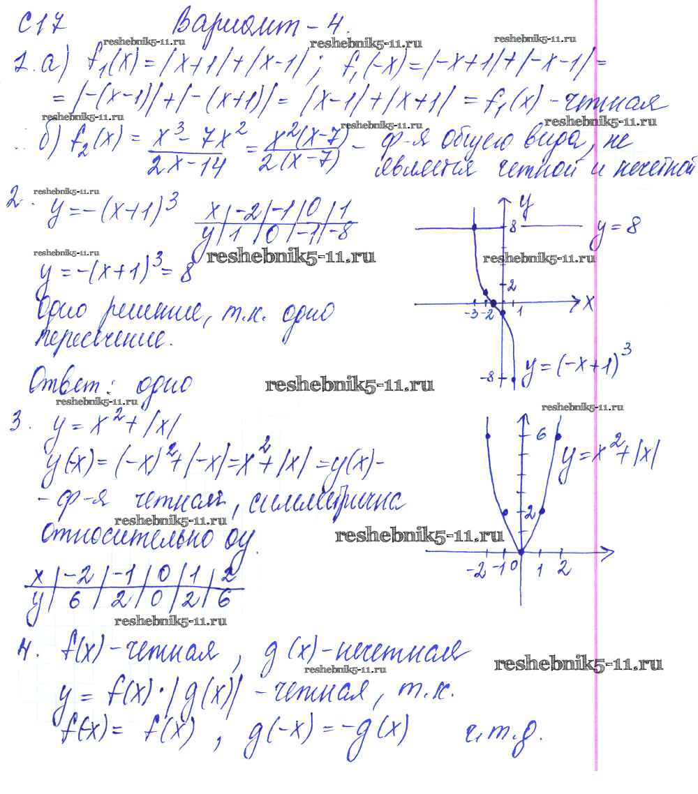 Готовая домашняя работа с ответами по Алгебре за 9 класс Журавлев, Малышева, Свентковский Контрольные и самостоятельные работы УМК Экзамен 2016 ФГОС - С-17. Четные и нечетные функции. Функция у = хn Вариант №4