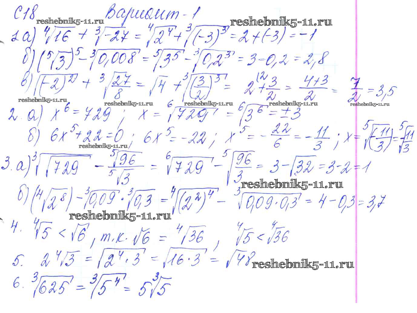 Готовая домашняя работа с ответами по Алгебре за 9 класс Журавлев, Малышева, Свентковский Контрольные и самостоятельные работы УМК Экзамен 2016 ФГОС - С-18. Корень n-й степени и его свойства Вариант №1
