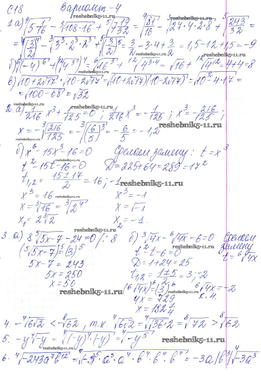 Готовая домашняя работа с ответами по Алгебре за 9 класс Журавлев, Малышева, Свентковский Контрольные и самостоятельные работы УМК Экзамен 2016 ФГОС - С-18. Корень n-й степени и его свойства Вариант №4