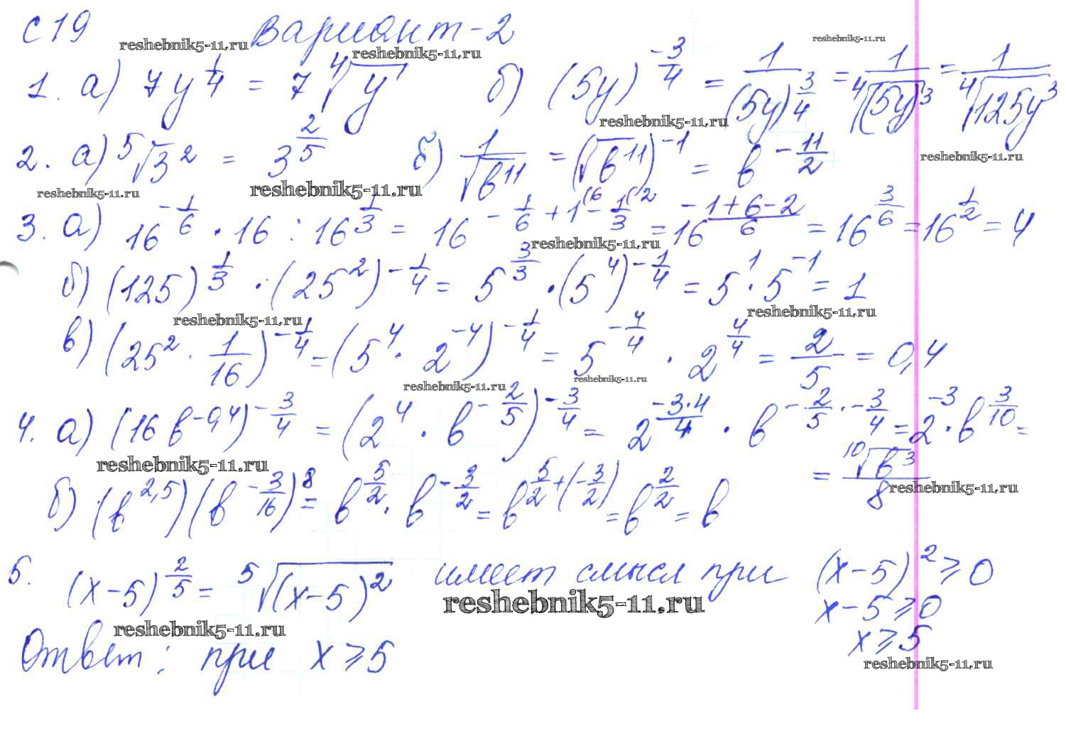 Готовая домашняя работа с ответами по Алгебре за 9 класс Журавлев, Малышева, Свентковский Контрольные и самостоятельные работы УМК Экзамен 2016 ФГОС - С-19. Определение и свойства степени с дробным показателем Вариант №2