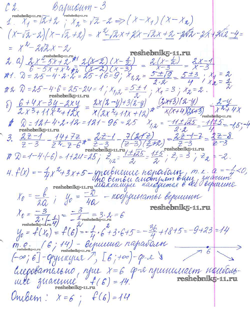 Готовая домашняя работа с ответами по Алгебре за 9 класс Журавлев, Малышева, Свентковский Контрольные и самостоятельные работы УМК Экзамен 2016 ФГОС - С-2. Квадратный трехчлен Вариант №3