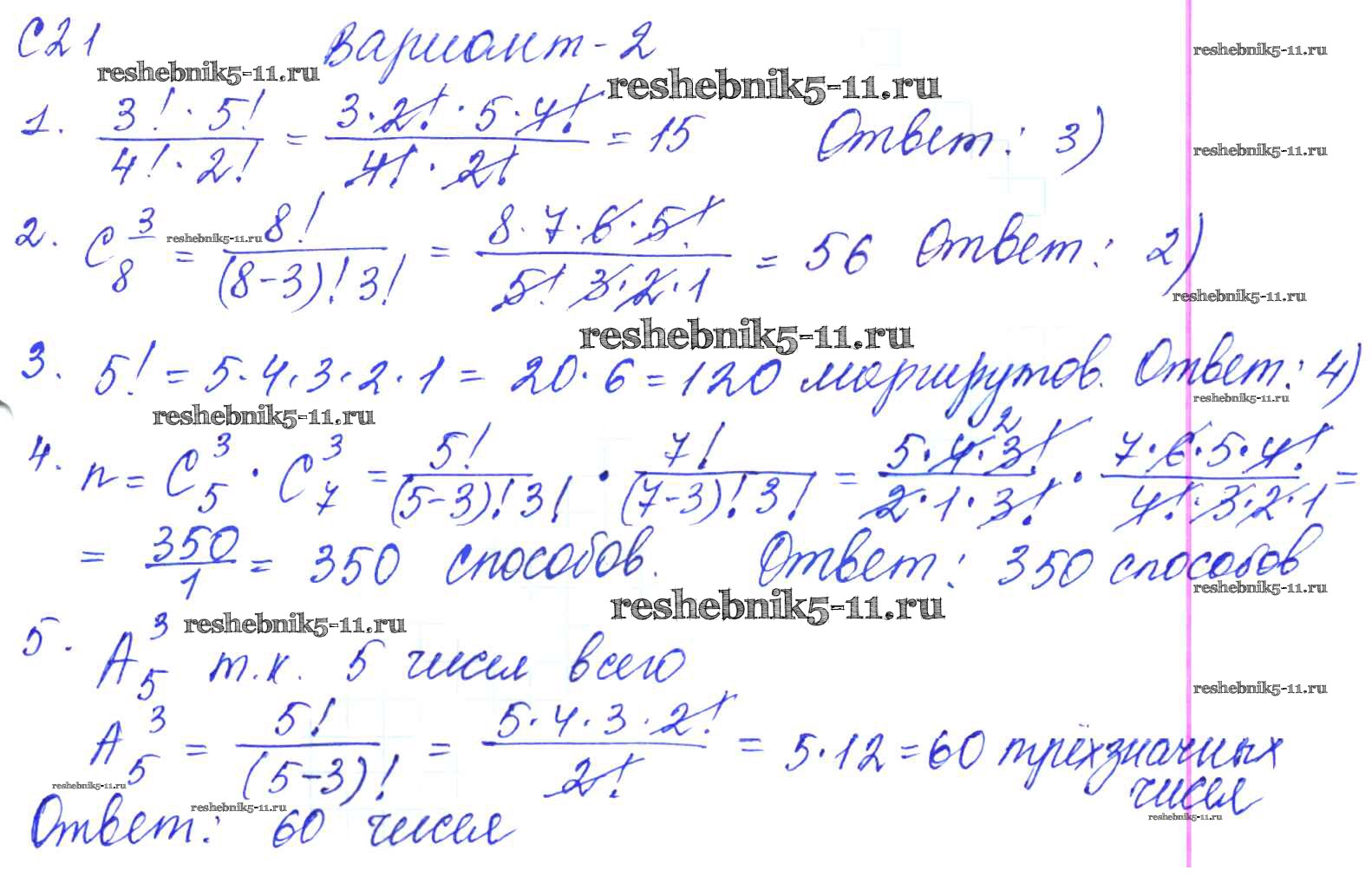 Готовая домашняя работа с ответами по Алгебре за 9 класс Журавлев, Малышева, Свентковский Контрольные и самостоятельные работы УМК Экзамен 2016 ФГОС - С-21. Элементы комбинаторики Вариант №2
