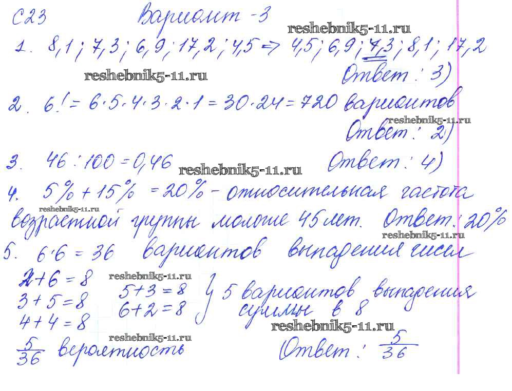 Готовая домашняя работа с ответами по Алгебре за 9 класс Журавлев, Малышева, Свентковский Контрольные и самостоятельные работы УМК Экзамен 2016 ФГОС - С-23. Элементы статистики и теории вероятностей Вариант №3