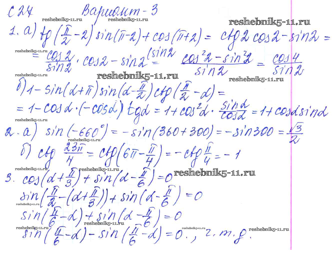 Готовая домашняя работа с ответами по Алгебре за 9 класс Журавлев, Малышева, Свентковский Контрольные и самостоятельные работы УМК Экзамен 2016 ФГОС - С-27. Формулы приведения Вариант №3