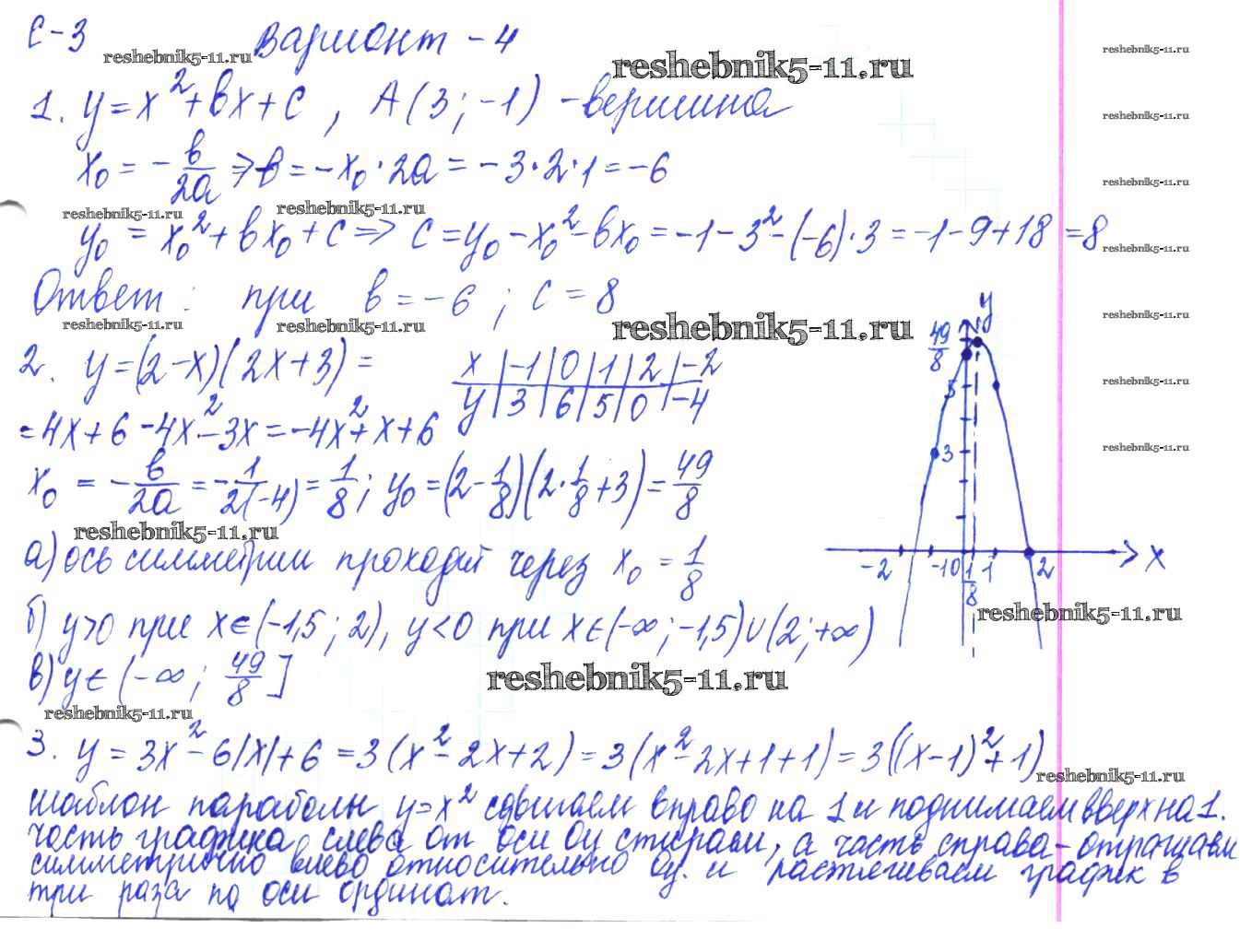 Готовая домашняя работа с ответами по Алгебре за 9 класс Журавлев, Малышева, Свентковский Контрольные и самостоятельные работы УМК Экзамен 2016 ФГОС - С-3. График квадратичной функции Вариант №4
