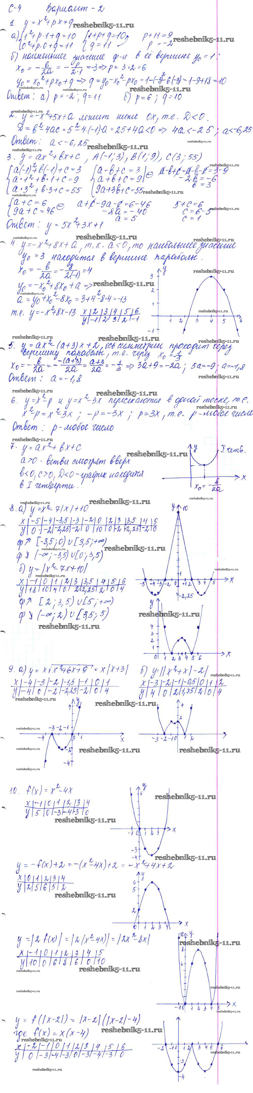 Готовая домашняя работа с ответами по Алгебре за 9 класс Журавлев, Малышева, Свентковский Контрольные и самостоятельные работы УМК Экзамен 2016 ФГОС - С-4. Квадратичная функция - задачи с параметрами Вариант №2
