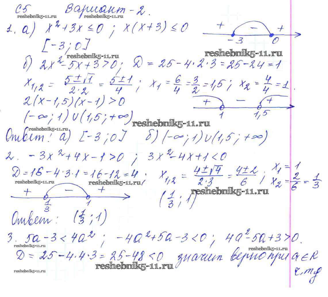 Готовая домашняя работа с ответами по Алгебре за 9 класс Журавлев, Малышева, Свентковский Контрольные и самостоятельные работы УМК Экзамен 2016 ФГОС - С-5. Решение квадратичных неравенств Вариант №2