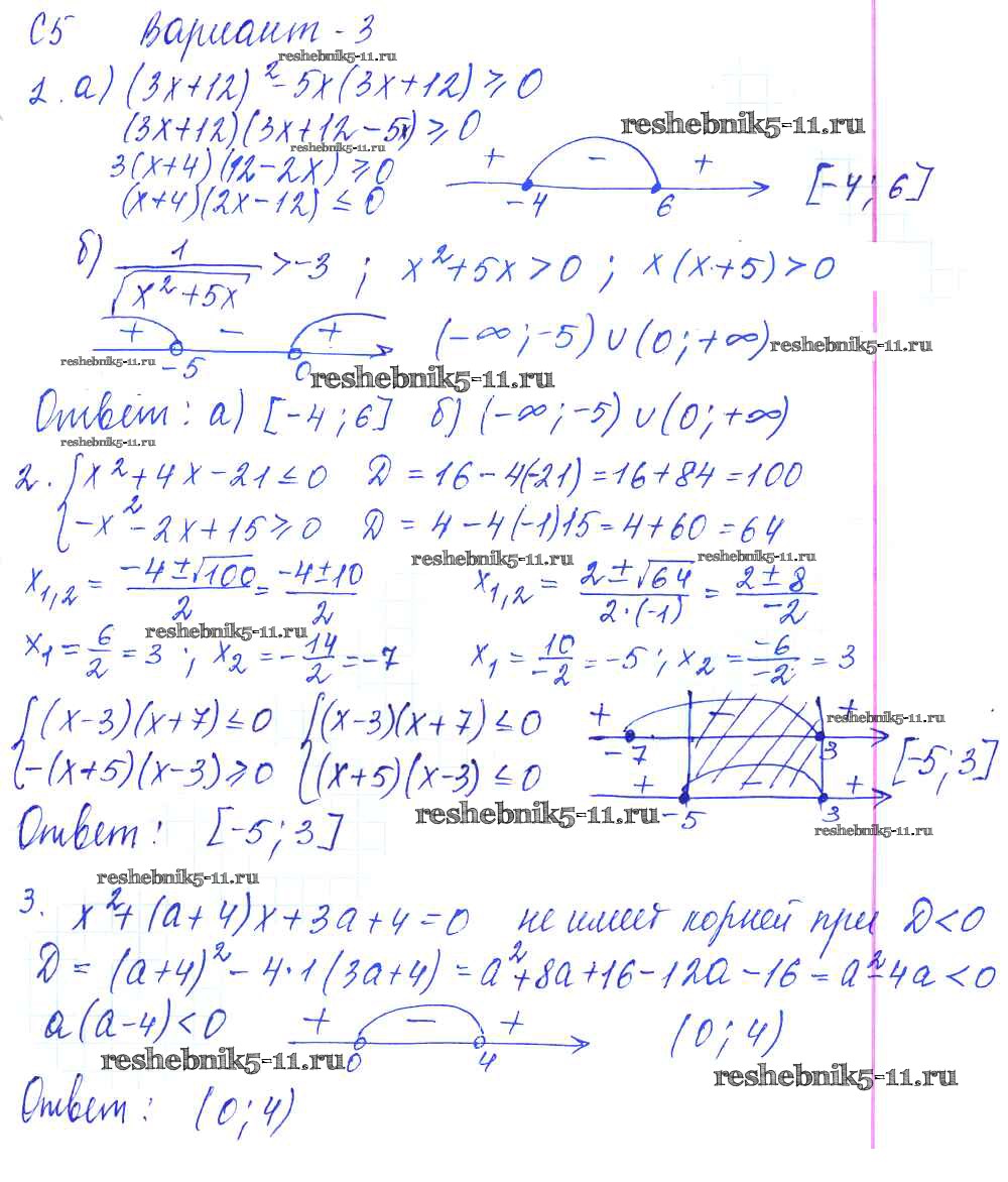 Готовая домашняя работа с ответами по Алгебре за 9 класс Журавлев, Малышева, Свентковский Контрольные и самостоятельные работы УМК Экзамен 2016 ФГОС - С-5. Решение квадратичных неравенств Вариант №3