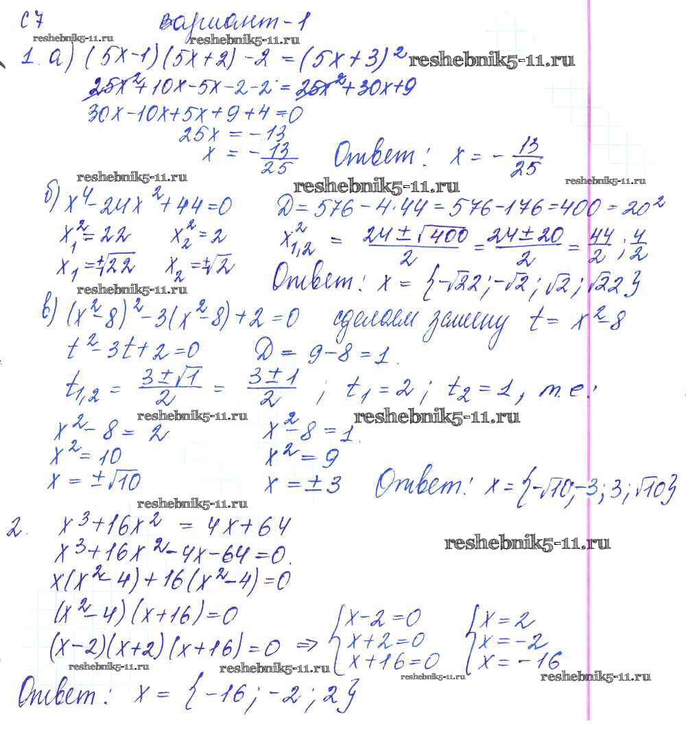Готовая домашняя работа с ответами по Алгебре за 9 класс Журавлев, Малышева, Свентковский Контрольные и самостоятельные работы УМК Экзамен 2016 ФГОС - С-7. Решение целых уравнений Вариант №1