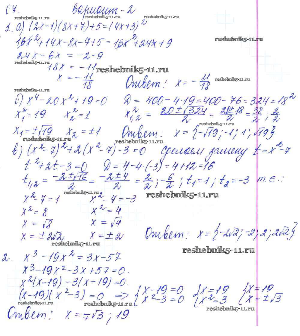 Готовая домашняя работа с ответами по Алгебре за 9 класс Журавлев, Малышева, Свентковский Контрольные и самостоятельные работы УМК Экзамен 2016 ФГОС - С-7. Решение целых уравнений Вариант №2