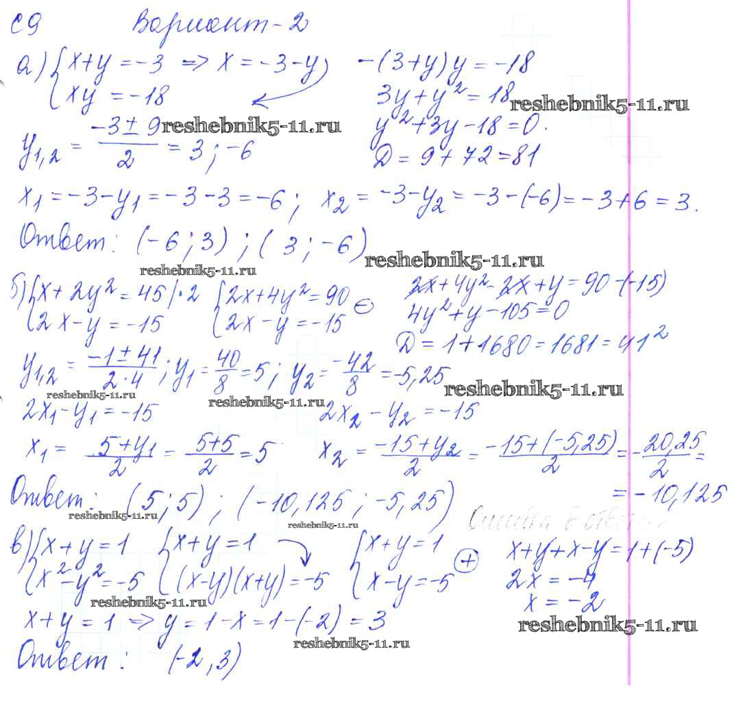 Готовая домашняя работа с ответами по Алгебре за 9 класс Журавлев, Малышева, Свентковский Контрольные и самостоятельные работы УМК Экзамен 2016 ФГОС - С-9. Решение систем уравнений второй степени Вариант №2