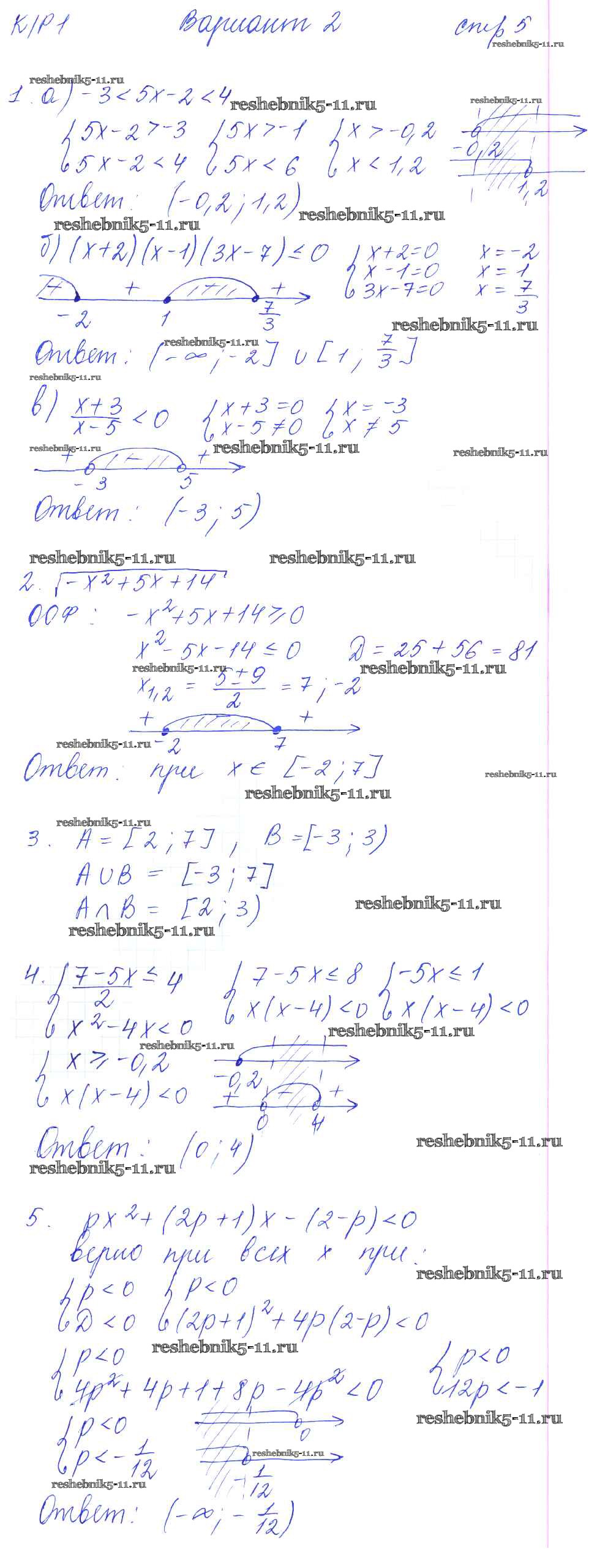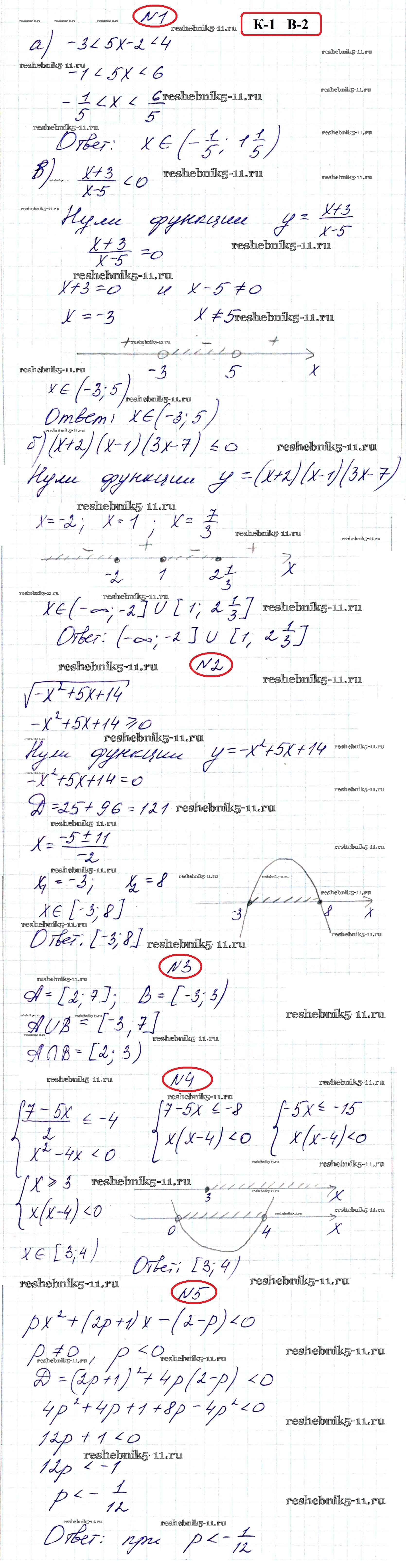 Готовая домашняя работа с ответами по Алгебре за 9 класс Александрова Контрольные работы Базовый уровень Мнемозина 2016 ФГОС - Контрольная работа №1 вариант №2