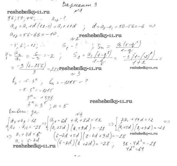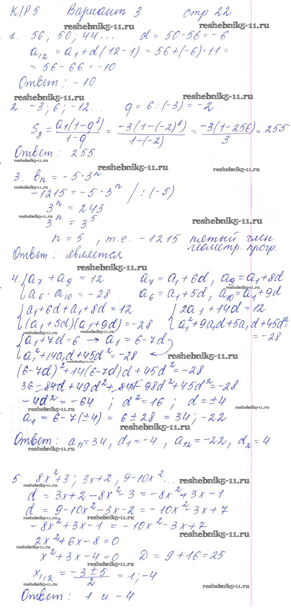 Готовая домашняя работа с ответами по Алгебре за 9 класс Александрова Контрольные работы Базовый уровень Мнемозина 2016 ФГОС - Контрольная работа №5 вариант №3