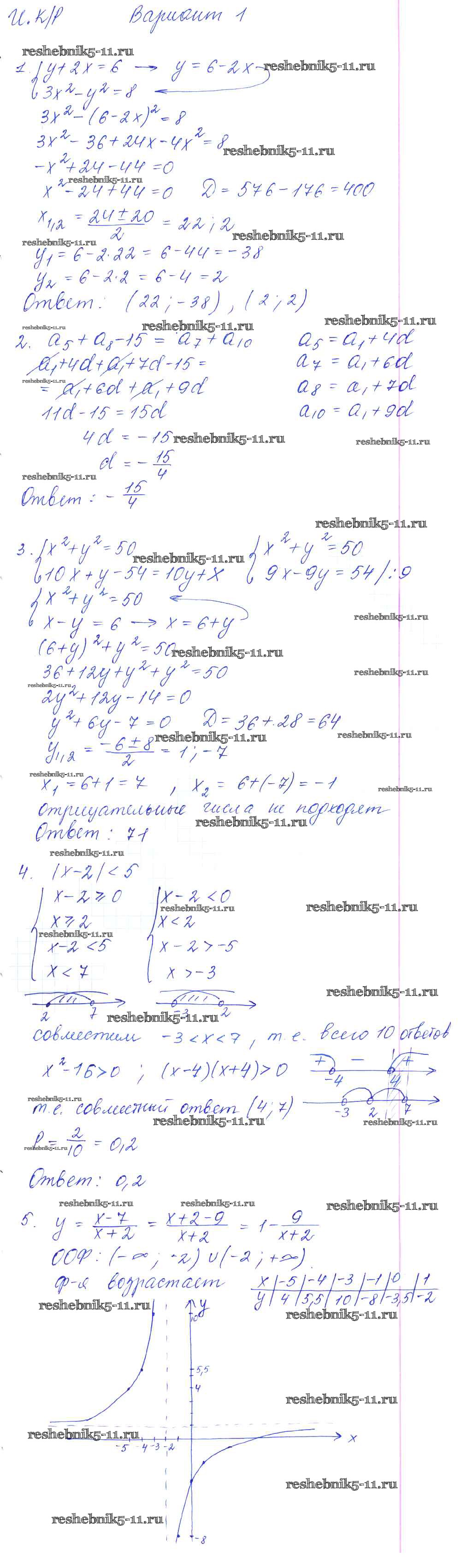 Готовая домашняя работа с ответами по Алгебре за 9 класс Александрова Контрольные работы Базовый уровень Мнемозина 2016 ФГОС - Итоговая контрольная работа вариант №1