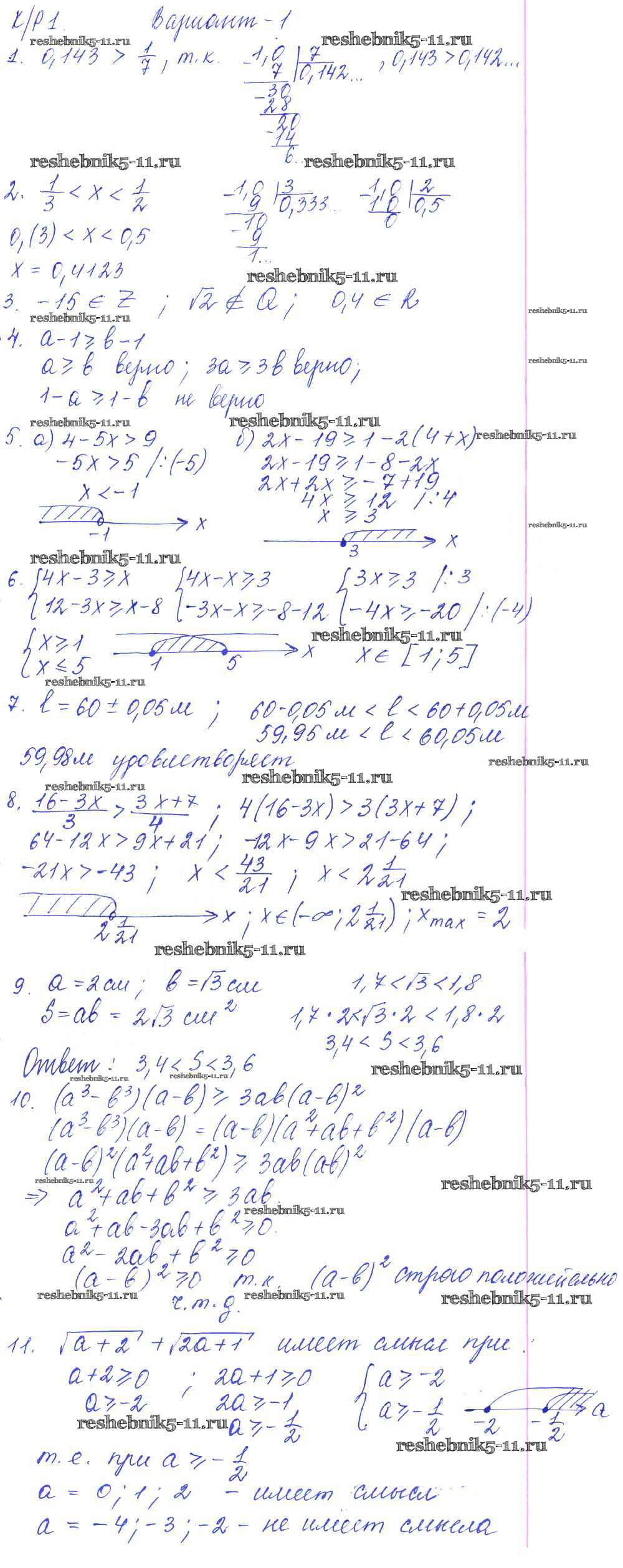 Готовая домашняя работа с ответами по Алгебре за 9 класс Кузнецова, Минаева, Рослова, Суворова Контрольные работы Просвещение 2016 ФГОС - КР-1. Неравенства вариант №1