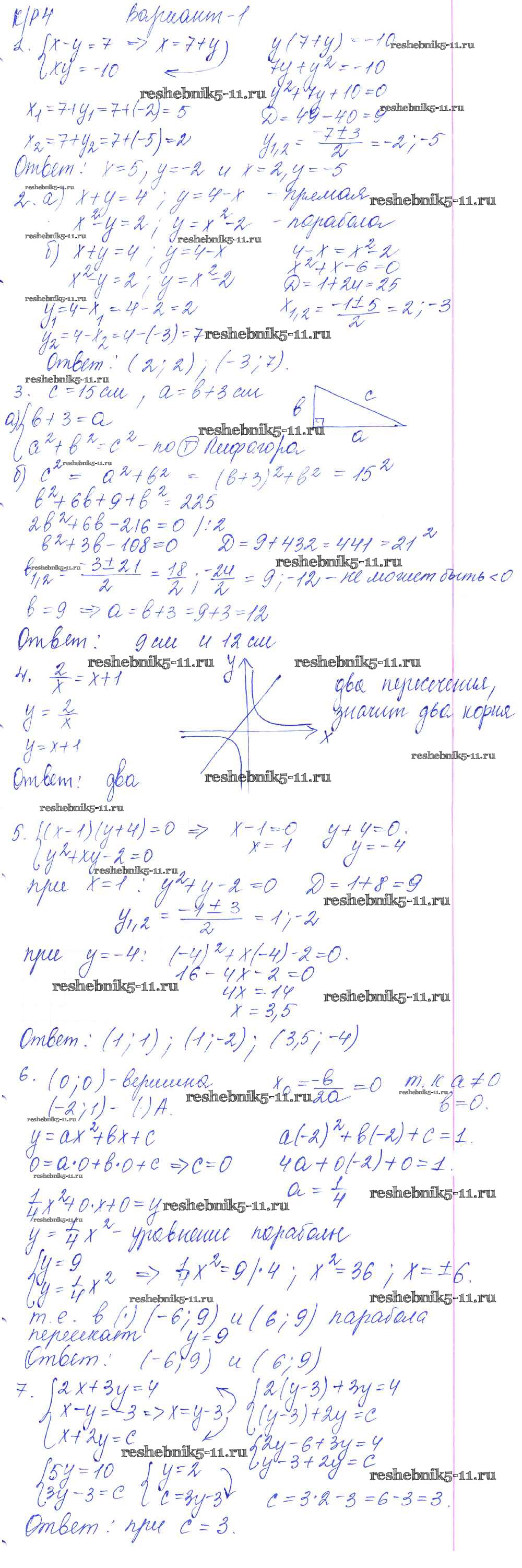 Готовая домашняя работа с ответами по Алгебре за 9 класс Кузнецова, Минаева, Рослова, Суворова Контрольные работы Просвещение 2016 ФГОС - КР-4. Системы уравнений вариант №1