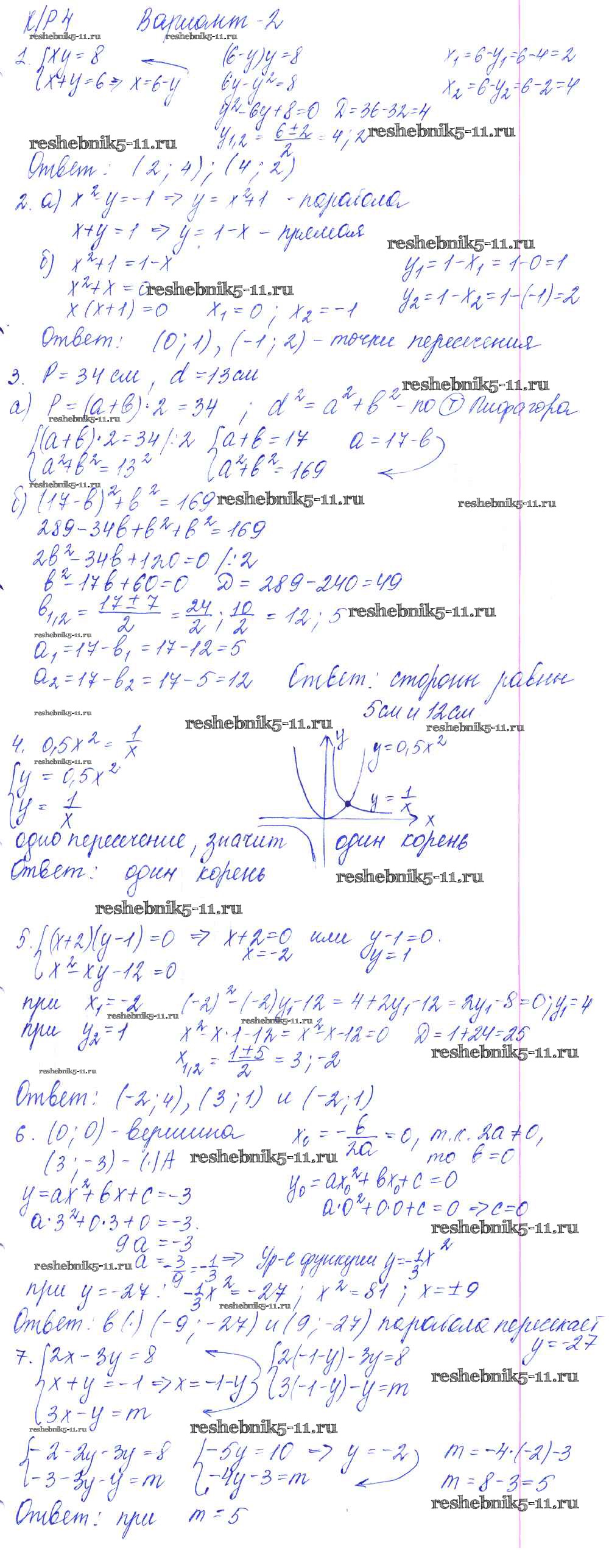 Готовая домашняя работа с ответами по Алгебре за 9 класс Кузнецова, Минаева, Рослова, Суворова Контрольные работы Просвещение 2016 ФГОС - КР-4. Системы уравнений вариант №2