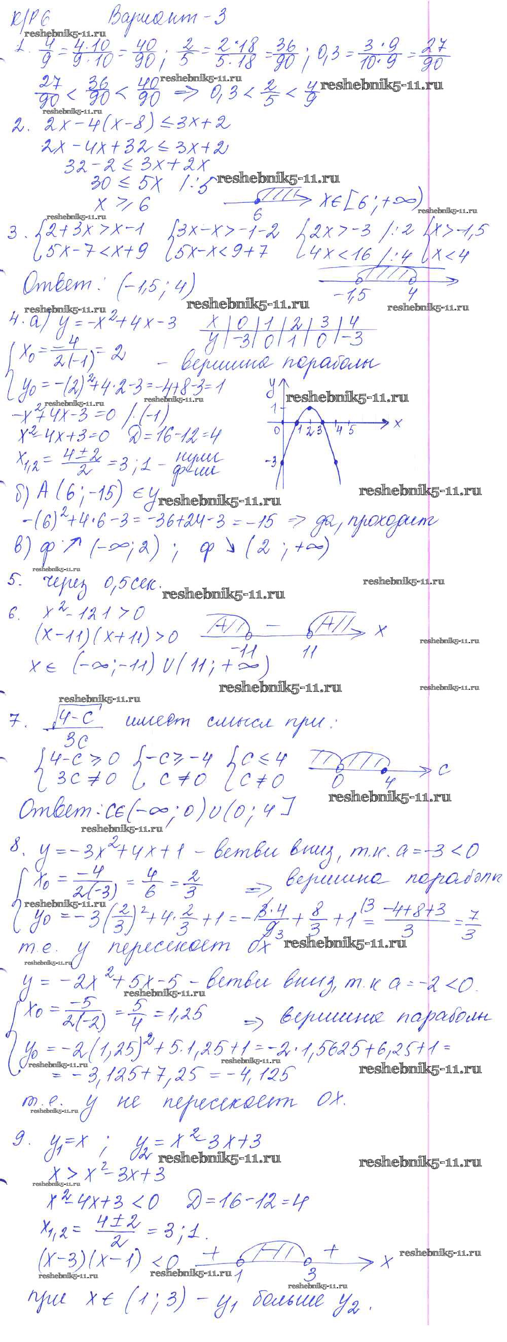 Готовая домашняя работа с ответами по Алгебре за 9 класс Кузнецова, Минаева, Рослова, Суворова Контрольные работы Просвещение 2016 ФГОС - КР-6. Итоговая работа за первое полугодие вариант №3
