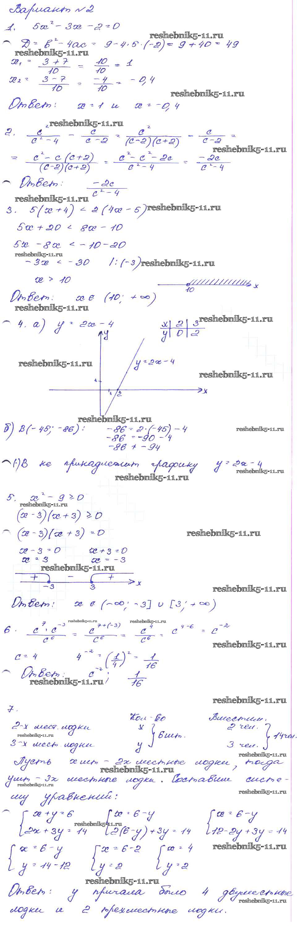 Готовая домашняя работа с ответами по Алгебре за 9 класс Кузнецова, Бунимович, Пигарев, Суворова Сборник заданий Дрофа 2008 ФГОС - Работа 4 Вариант-2