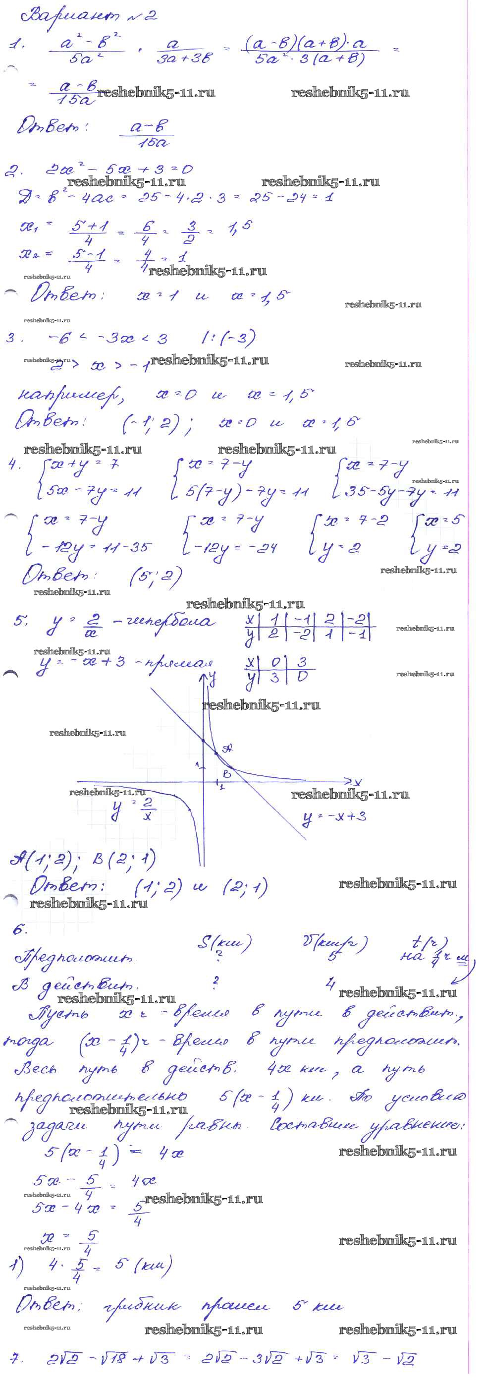 Готовая домашняя работа с ответами по Алгебре за 9 класс Кузнецова, Бунимович, Пигарев, Суворова Сборник заданий Дрофа 2008 ФГОС - Работа 5 Вариант-2