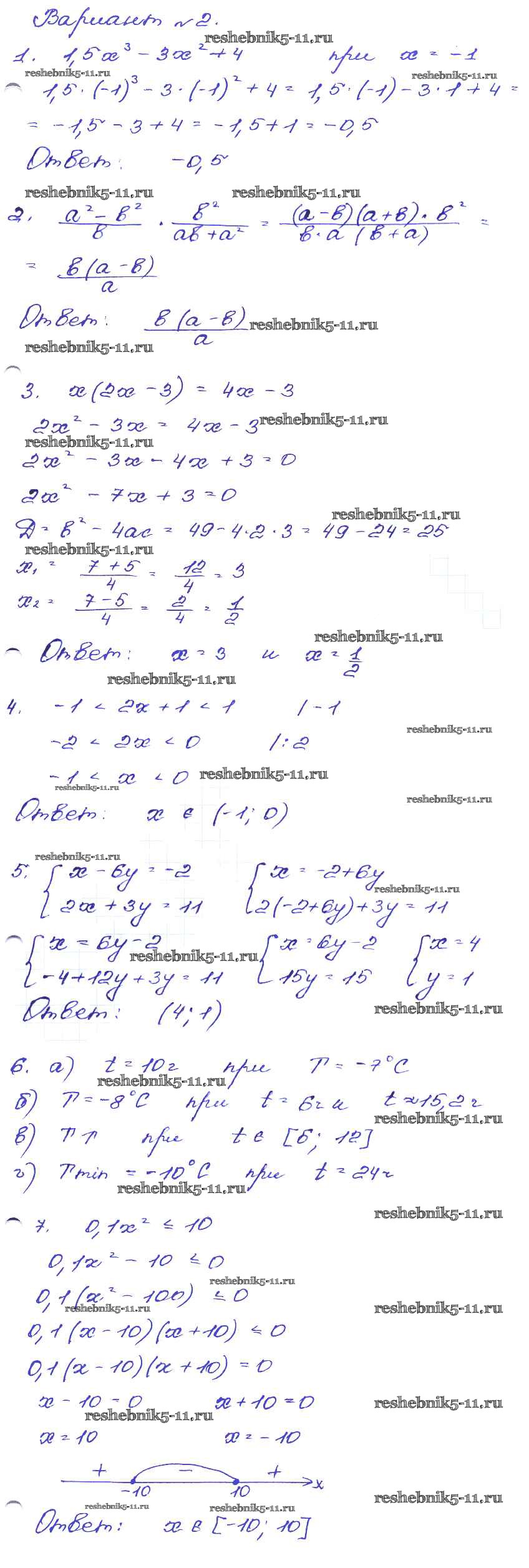 Готовая домашняя работа с ответами по Алгебре за 9 класс Кузнецова, Бунимович, Пигарев, Суворова Сборник заданий Дрофа 2008 ФГОС - Работа 6 Вариант-2