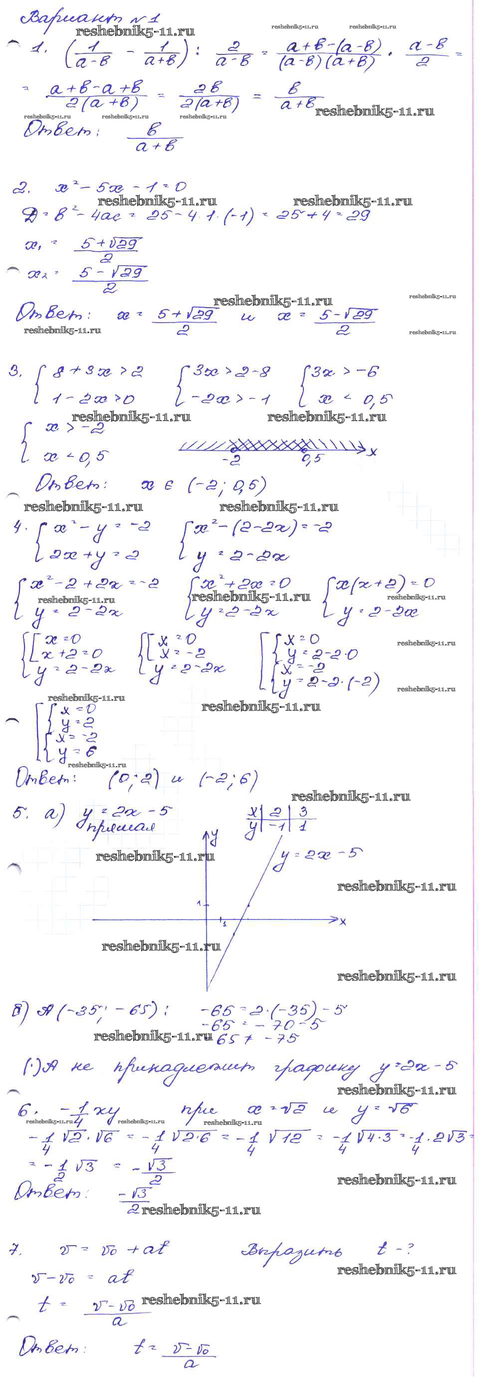 Готовая домашняя работа с ответами по Алгебре за 9 класс Кузнецова, Бунимович, Пигарев, Суворова Сборник заданий Дрофа 2008 ФГОС - Работа 7 Вариант-1