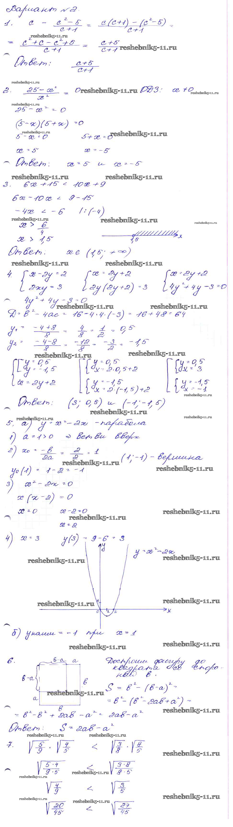 Алгебра за 9 класс Кузнецова Сборник заданий Дрофа работа 8 Вариант-2