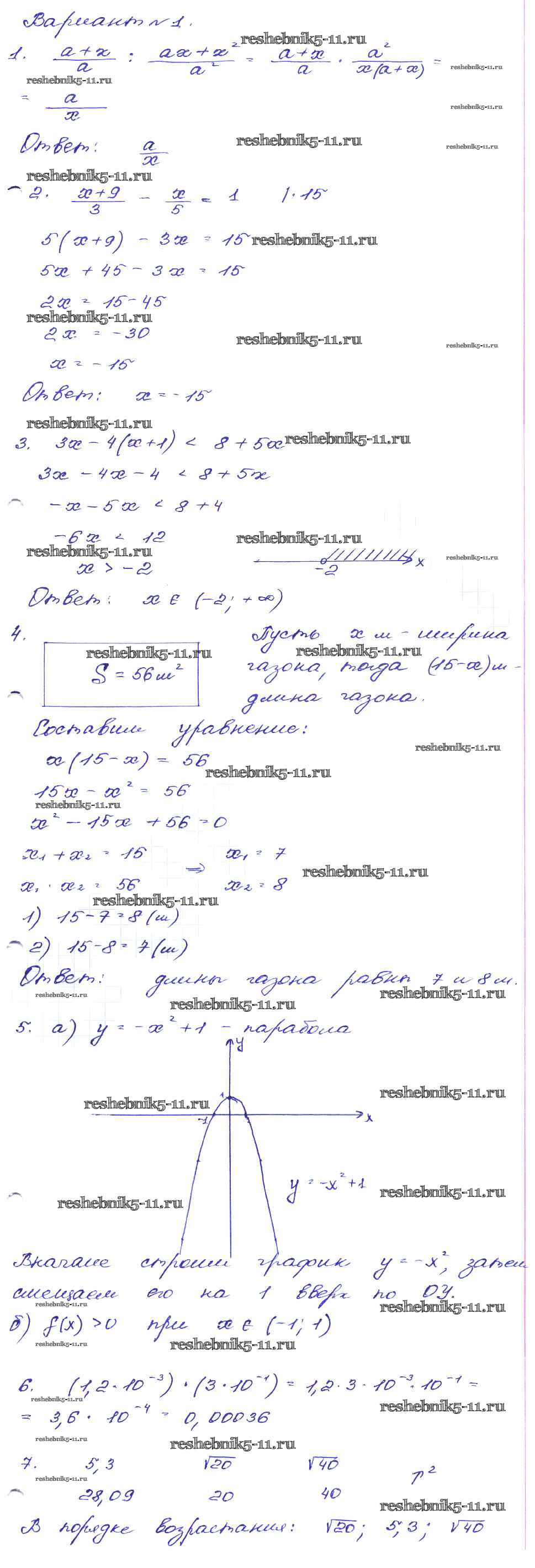 Готовая домашняя работа с ответами по Алгебре за 9 класс Кузнецова, Бунимович, Пигарев, Суворова Сборник заданий Дрофа 2008 ФГОС - Работа 10 Вариант-1