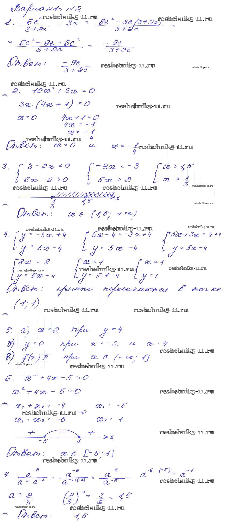 Готовая домашняя работа с ответами по Алгебре за 9 класс Кузнецова, Бунимович, Пигарев, Суворова Сборник заданий Дрофа 2008 ФГОС - Работа 11 Вариант-2