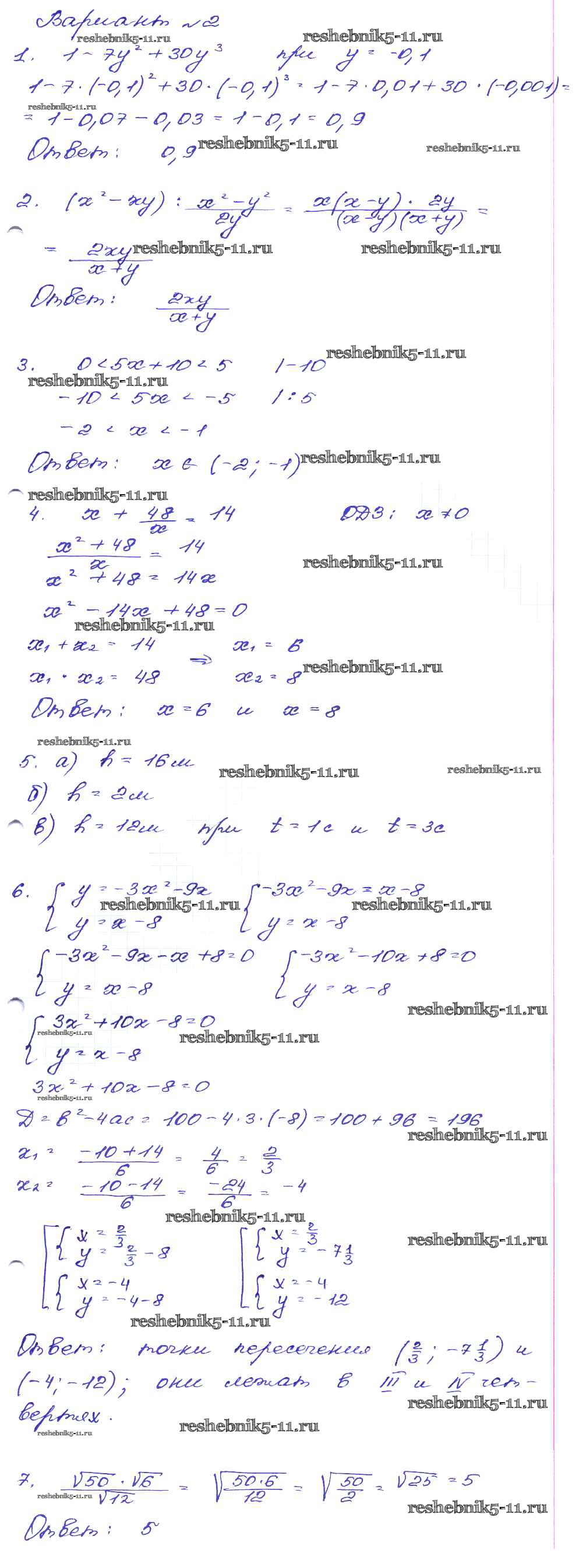 Готовая домашняя работа с ответами по Алгебре за 9 класс Кузнецова, Бунимович, Пигарев, Суворова Сборник заданий Дрофа 2008 ФГОС - Работа 12 Вариант-2