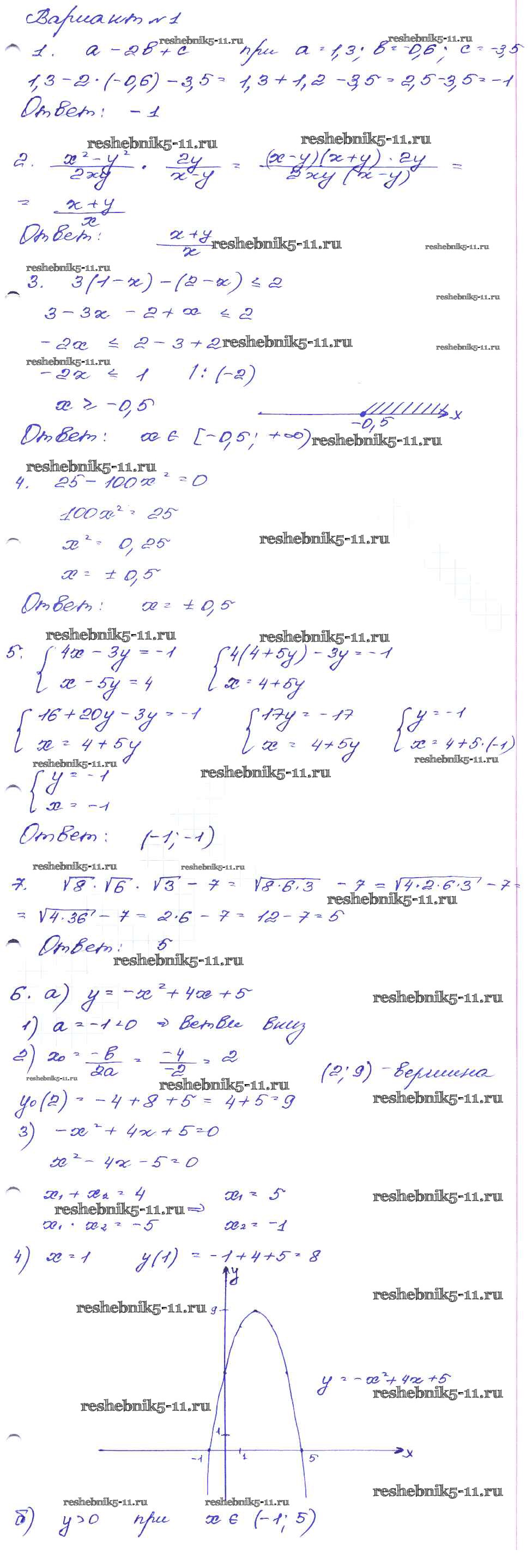 Готовая домашняя работа с ответами по Алгебре за 9 класс Кузнецова, Бунимович, Пигарев, Суворова Сборник заданий Дрофа 2008 ФГОС - Работа 13 Вариант-1