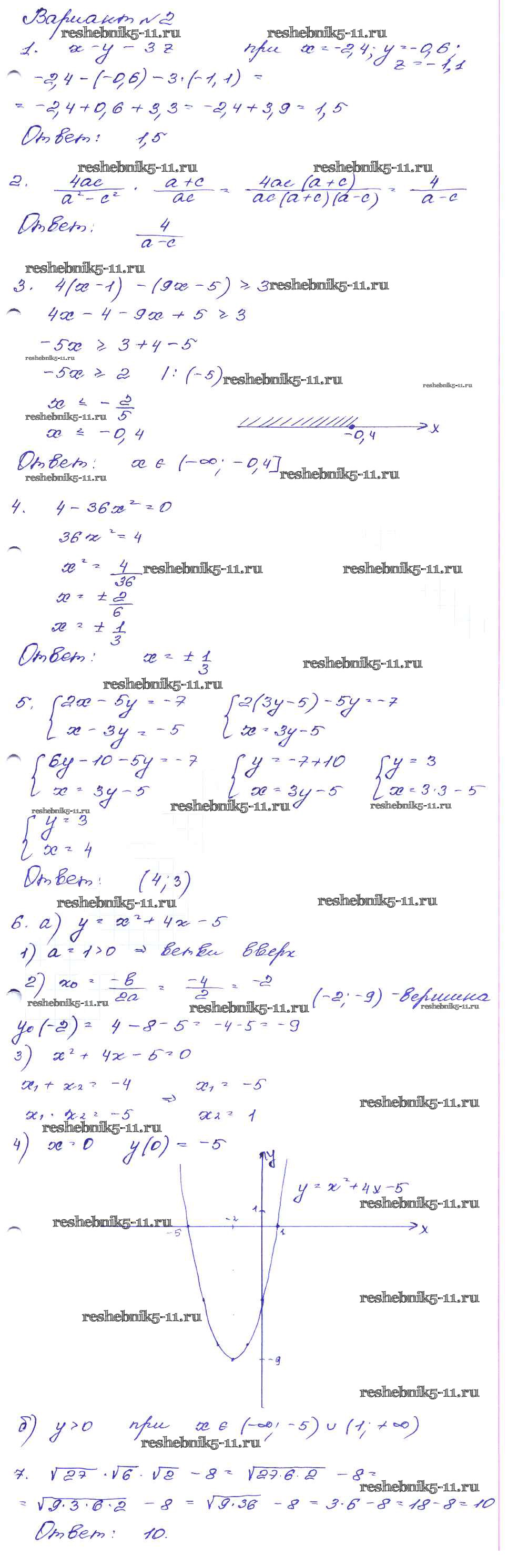 Готовая домашняя работа с ответами по Алгебре за 9 класс Кузнецова, Бунимович, Пигарев, Суворова Сборник заданий Дрофа 2008 ФГОС - Работа 13 Вариант-2