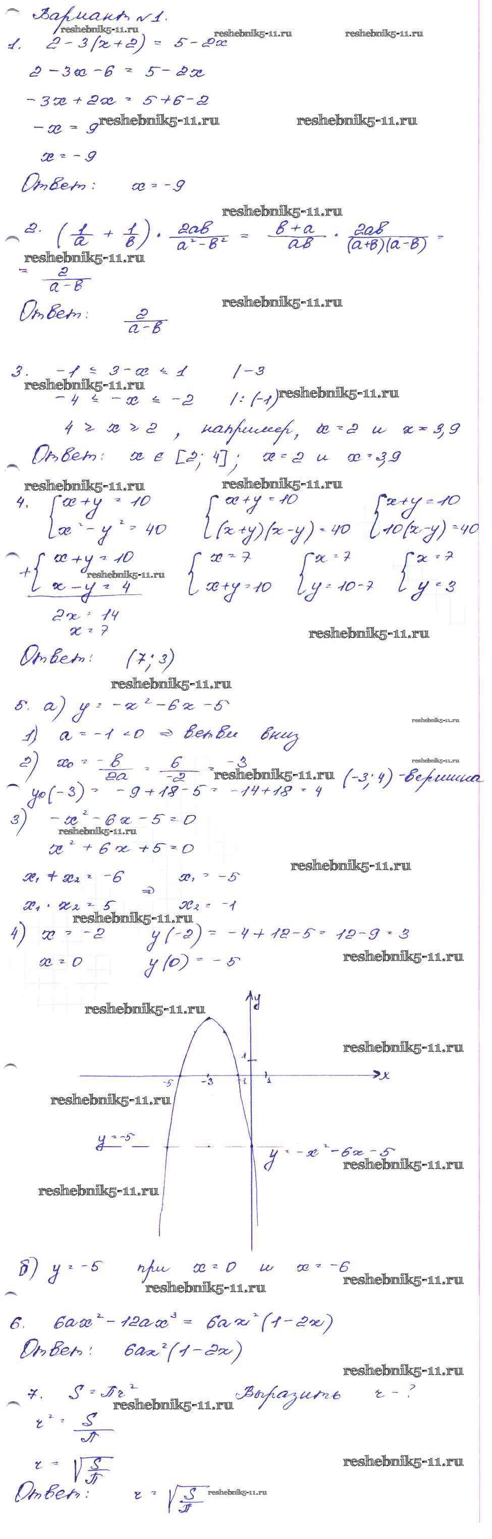 Готовая домашняя работа с ответами по Алгебре за 9 класс Кузнецова, Бунимович, Пигарев, Суворова Сборник заданий Дрофа 2008 ФГОС - Работа 16 Вариант-1