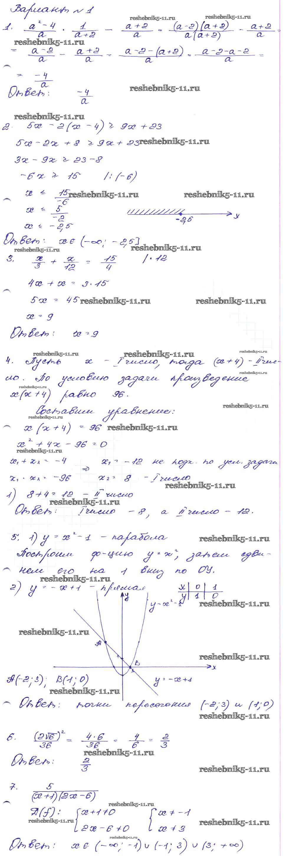 Готовая домашняя работа с ответами по Алгебре за 9 класс Кузнецова, Бунимович, Пигарев, Суворова Сборник заданий Дрофа 2008 ФГОС - Работа 18 Вариант-1
