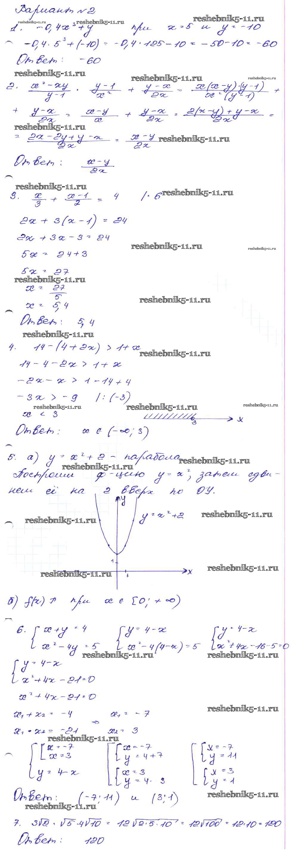 Готовая домашняя работа с ответами по Алгебре за 9 класс Кузнецова, Бунимович, Пигарев, Суворова Сборник заданий Дрофа 2008 ФГОС - Работа 20 Вариант-2
