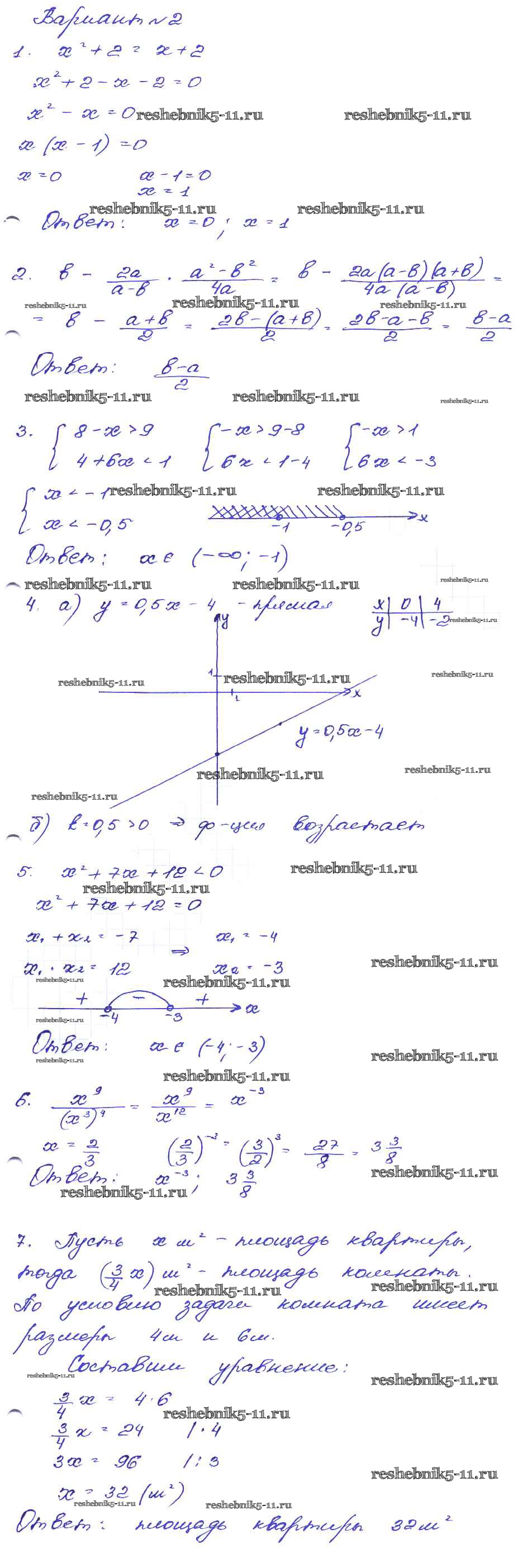 Готовая домашняя работа с ответами по Алгебре за 9 класс Кузнецова, Бунимович, Пигарев, Суворова Сборник заданий Дрофа 2008 ФГОС - Работа 21 Вариант-2