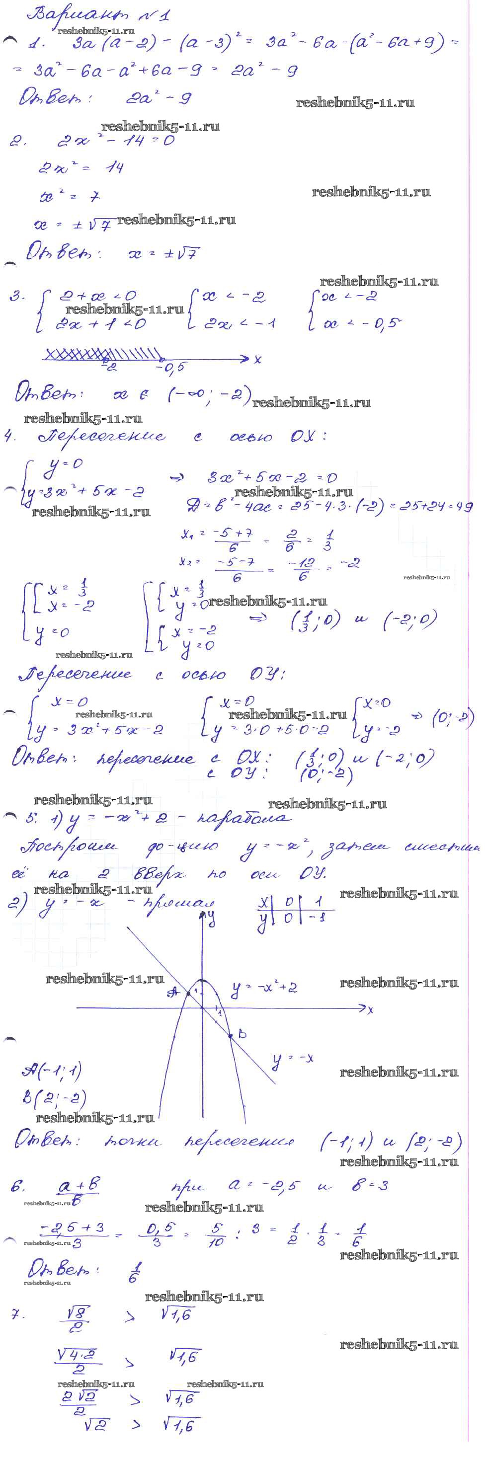 Готовая домашняя работа с ответами по Алгебре за 9 класс Кузнецова, Бунимович, Пигарев, Суворова Сборник заданий Дрофа 2008 ФГОС - Работа 23 Вариант-1