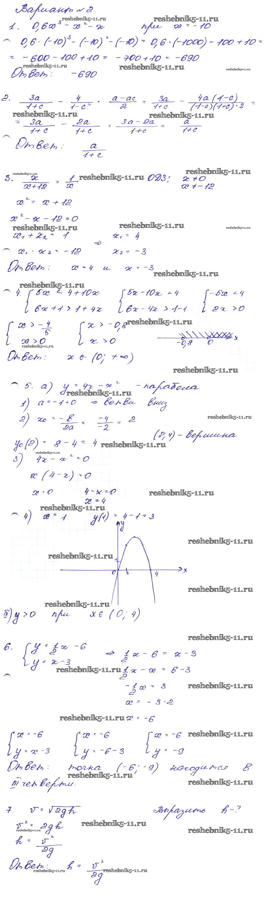 Готовая домашняя работа с ответами по Алгебре за 9 класс Кузнецова, Бунимович, Пигарев, Суворова Сборник заданий Дрофа 2008 ФГОС - Работа 28 Вариант-2