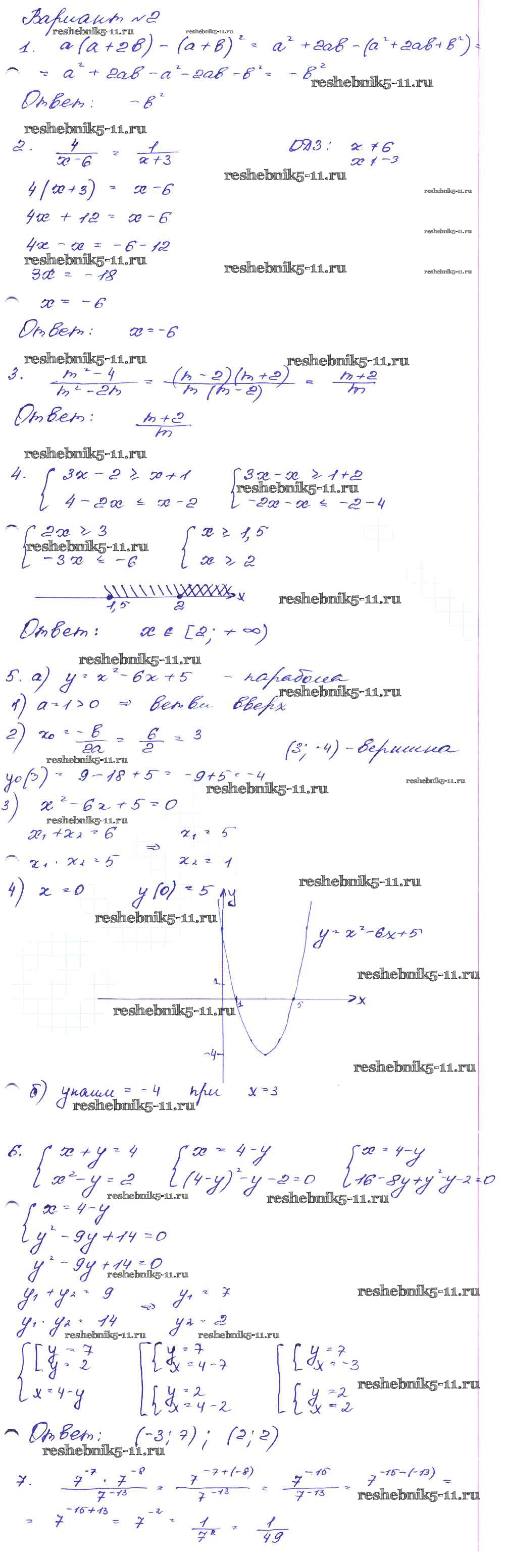 Готовая домашняя работа с ответами по Алгебре за 9 класс Кузнецова, Бунимович, Пигарев, Суворова Сборник заданий Дрофа 2008 ФГОС - Работа 29 Вариант-2