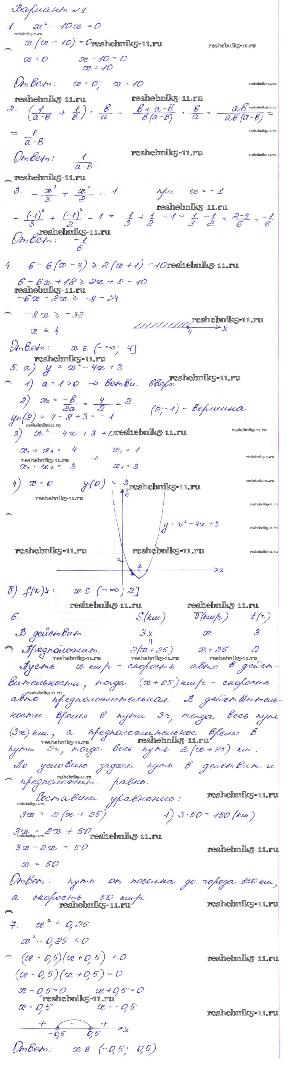 Готовая домашняя работа с ответами по Алгебре за 9 класс Кузнецова, Бунимович, Пигарев, Суворова Сборник заданий Дрофа 2008 ФГОС - Работа 33 Вариант-1