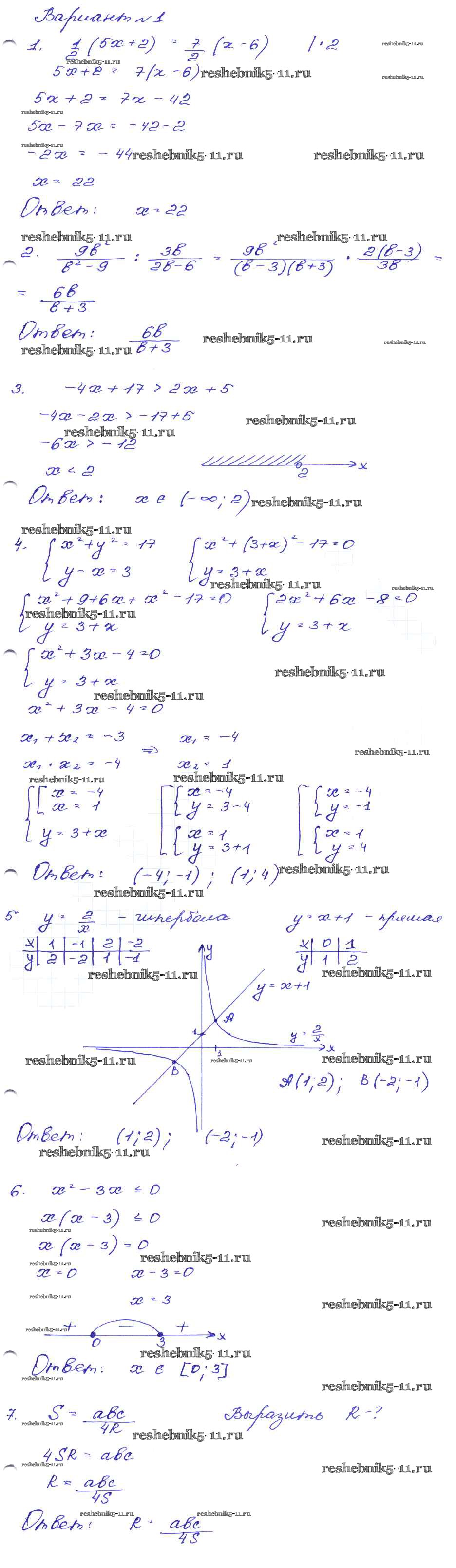 Готовая домашняя работа с ответами по Алгебре за 9 класс Кузнецова, Бунимович, Пигарев, Суворова Сборник заданий Дрофа 2008 ФГОС - Работа 37 Вариант-1