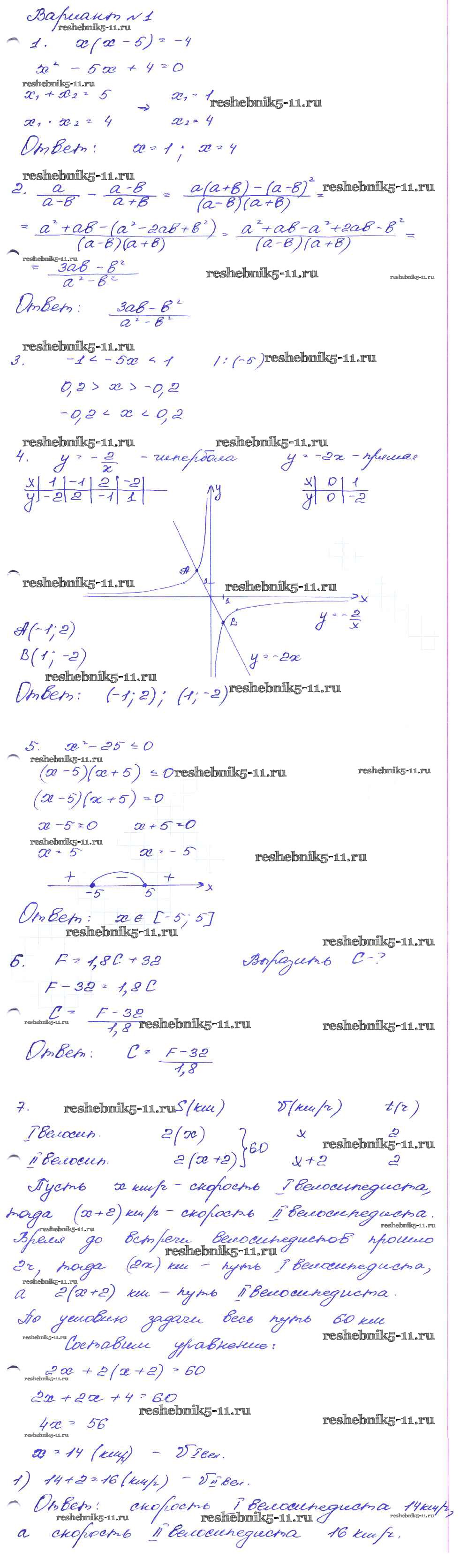 Готовая домашняя работа с ответами по Алгебре за 9 класс Кузнецова, Бунимович, Пигарев, Суворова Сборник заданий Дрофа 2008 ФГОС - Работа 38 Вариант-1