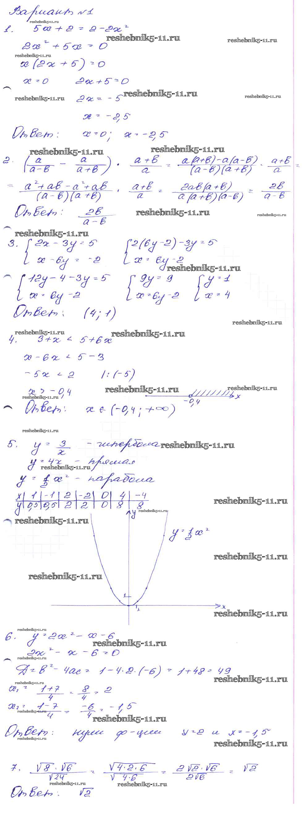 Готовая домашняя работа с ответами по Алгебре за 9 класс Кузнецова, Бунимович, Пигарев, Суворова Сборник заданий Дрофа 2008 ФГОС - Работа 39 Вариант-1